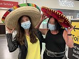 Brits on the last flight from Cancun revealed their anger at having to cut their dream trips short and fork out thousands for tickets to beat tomorrow’s 4am red list deadline. Zoe Evans holiday with son Daniel and his girlfriend Elena Alberghini was cut short by one day (pictured wearing sombreros in Gatwick airport)
