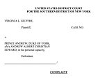 Virginia Giuffre filed the complaint against Prince Andrew at the Southern District Court of New York