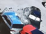 Shocking moment black BMW barrels into parked vehicles leaving driver, 31, with life-changing injuries and three children in car needing hospital treatment
