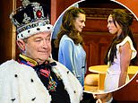In LA the Sussex and Cambridge duchesses have a magnificent catfight over who made who cry. Pictured: Kara Tointon as Kate Middleton (left) and Crystal Condie as Meghan Markle