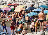Hundreds of tourists flood a beach in Barcelona as the country braces itself for a severe heatwave