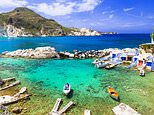 A rescue operation is underway for 17 passengers after a British tourist boat sank off the Greek island of Milos (pictured)