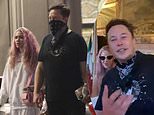 Musk, Grimes, his children and their entourage are pictured on Sunday evening in Florence, having flown in from Los Angeles the day before