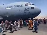 Footage from Hamad Karzai airport showed hundreds of people running alongside – and in front of – a US Air Force plane preparing to take off