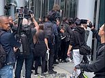 Footage earlier showed police line up to block off the entrance to the building as one protester shouted: ‘They’re coming for our children.’