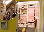 The Oram family, from Nottingham, appeared on the Channel 5 programme this evening to reveal how their lovely family home was now filled with mess – from the storage under the stairs, to their dining room, garden shed and bedrooms. Pictured, the team turned the messy storage under the stairs into a well-organised crafting station for Julie