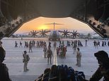 Pictured: Members of Spanish National Police forces and military personnel who were stationed in Afghanistan disembark from the last Spanish evacuation flight, at the Torrejon de Ardoz air base, 30 km from Madrid, on August 27, 2021