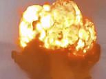 The emergencies ministry said that the scattering radius of the fragments was up to 1.25 miles. Above: The moment of the huge blast