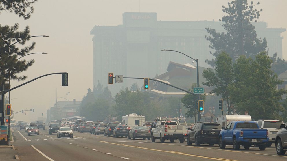 The Caldor Fire spanned more than 328 square miles (850 square kilometers) and was 25% contained Thursday. On Monday, flames raced so quickly toward the California resort city of South Lake Tahoe that officials ordered a mass evacuation of all 22,000 residents. People across the state line in Douglas County were ordered to leave a day later.