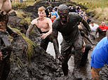 Competitors pushed themselves to the limits during a gruelling ten-mile Tough Mudder run in Cheshire (pictured), which saw them face electric shocks, a five-foot drop into freezing water, monkey bars and a web of tightropes