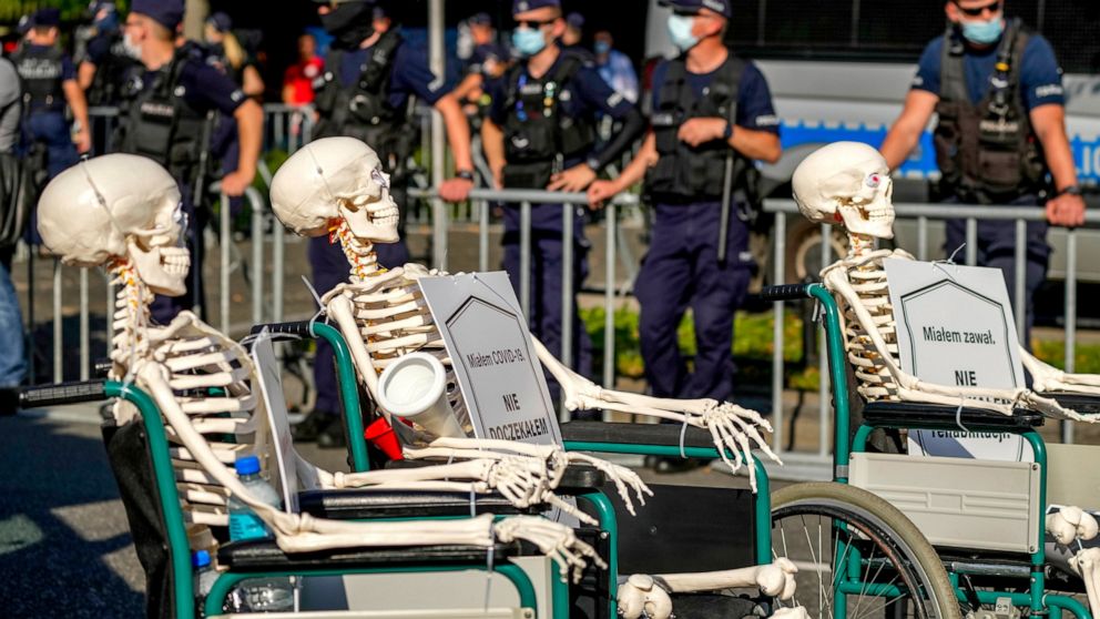 WARSAW, Poland — Large numbers of doctors, nurses and other medical workers marched in Warsaw on Saturday to demand higher wages and an improvement in working conditions made more difficult by the coronavirus pandemic.