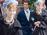 Bridgerton series 2: Phoebe Dynevor arrives on set wearing a hair net and visor as she joins on-screen brother Jonathan Bailey in London after filming was paused THREE times due to Covid outbreaks