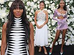 Naomi Campbell, 51, cuts a glamorous figure in a geometric printed midi while Emma Raducanu wows in white as they join Jourdan Dunn at star-studded British Vogue bash