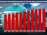 Around 40 per cent of the population of the UK have ‘opted-in’ to the organ donation register — around 26million people. Everyone in England is assumed to have opted in but people are able to opt in so their family are aware of their decision when they die