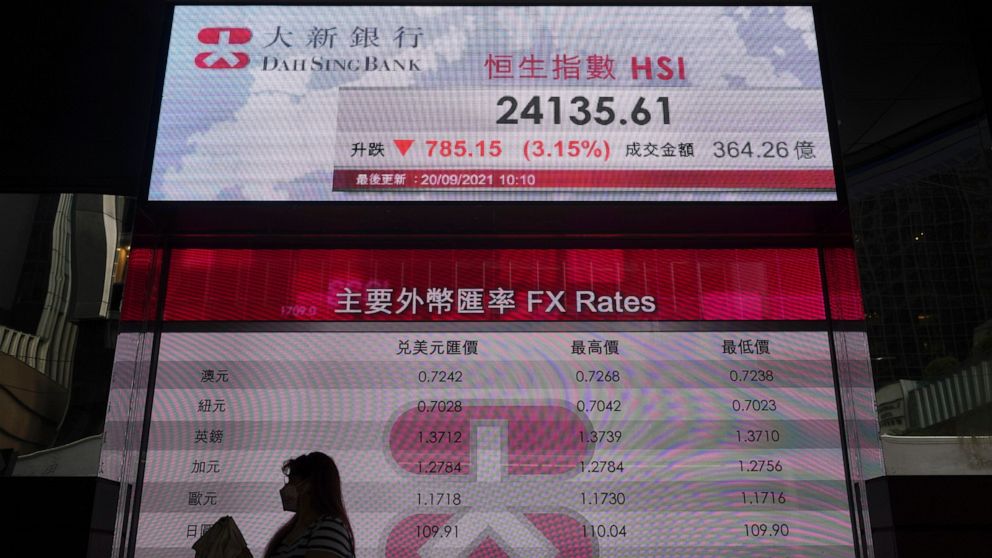 TOKYO — Asian shares declined Tuesday, with Tokyo down 2% as worries about heavily indebted Chinese real estate developers weighed on sentiment.