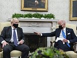 But Boris was slavishly sucking up to the fading US President all day, embarrassingly praising his disastrous Afghanistan withdrawal and insisting they are ‘at one’ on the thorny issue of the Northern Ireland border.