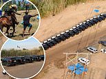 ‘Steel barrier’ of HUNDREDS of state trooper SUVs line the border in ‘unprecedented’ move to stem the tide of Haitian migrants after Biden made mockery of pledge to send them home by RELEASING thousands into America