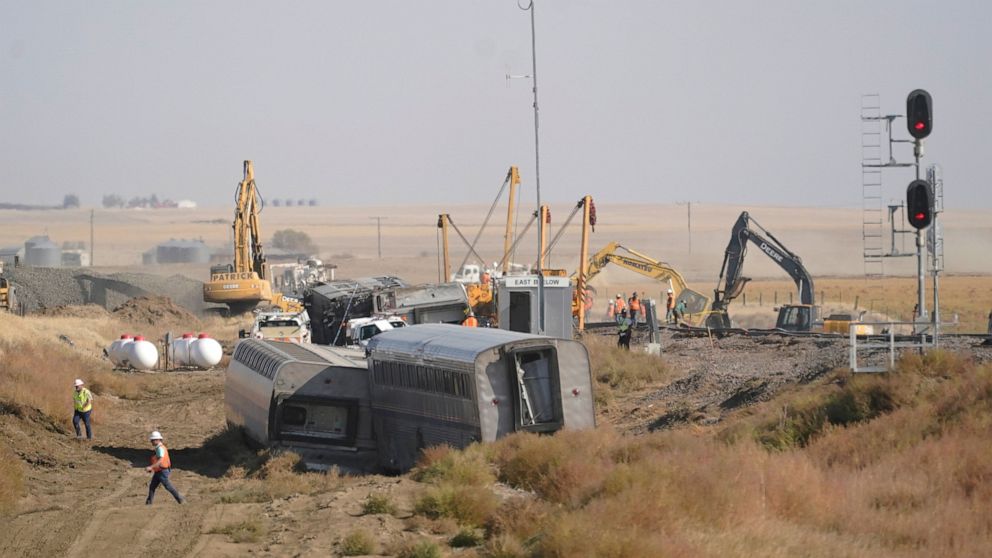 JOPLIN, Mont. — An Amtrak train that derailed in rural Montana over the weekend was going just under the speed limit at about 75 mph (121 kph) when it went off the track along a gradual curve, killing three people and possibly ejecting passengers, U.S. investigators said Monday.