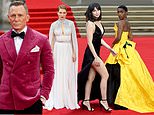 No Time To Die: Daniel Craig looks dapper in a pink suede dinner jacket as he joins glamorous Bond girls Lashana Lynch, Lea Seydoux and Ana de Armas at the world premiere amid his final outing as 007