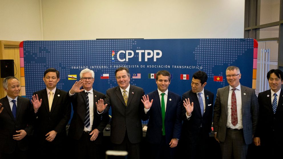 The 11-nation CPTPP, which took effect in 2018, includes agreements on market access, movement of labor and government procurement. Other members include Australia, Canada, Japan, Mexico, Peru, Singapore and New Zealand. The U.K. also has started negotiating to join after it left the European Union.