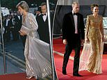 Kate Middleton pays tribute to Diana on the No Time To Die red carpet in a shimmering gold gown reminiscent of the princess’s metallic ensemble at the 1985 A View to Kill premiere