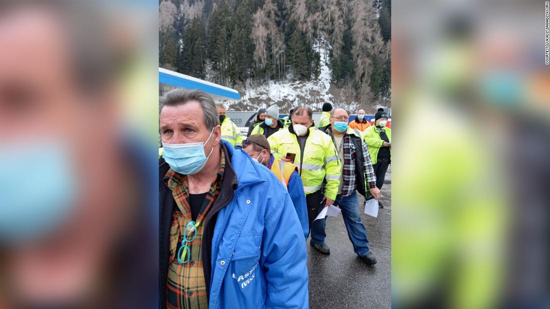 Truck drivers line up to show testing documentation on the Brenner Pass on February 16.