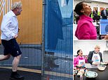 Forgotten your gym kit, Boris? PM warms up for Tory conference by jogging in a suit shirt and shorts… then reveals he wants to be a contestant on Great British Bake Off after trying his hand at cooking on youth centre visit with Priti Patel