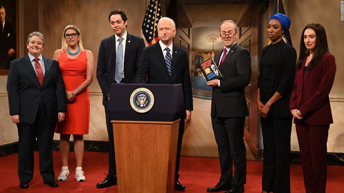 “Us Democrats have had each other’s backs no matter what,” said Pete Davidson as former New York Gov. Andrew Cuomo, who then urged the bill to be passed because “just like me, it deserves a second chance. And a third chance. And up to at least 11 chances.”