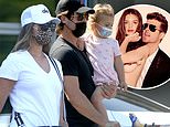 His partner April, who is 18 years his junior, also donned a baseball cap, opting for a white Alo Yoga design, as well as her own dark glasses and a leopard-print face mask.