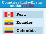 The seven destinations that will stay on the ‘red list’ will be: Colombia, Dominican Republic, Ecuador, Haiti, Panama, Peru and Venezuela.