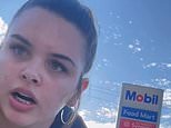 In her video, the Lamborghini can then be seen swerving around her vehicle and narrowly avoiding the biker as it drives off to the Mobil petrol station.