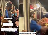 Deranged man riding subway with his kids PUNCHES woman in the face after she told him to ‘take a chill pill’ as violent crime on NYC trains soars