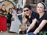 DailyMail.com has obtained exclusive photos of cinematographer Halyna Hutchins (pictured in the white wedding gown) on her wedding day 16 years ago, with husband Matt Hutchins (second from left) and parents Olga Androsovych (at far left) and Anatoly Androsovych