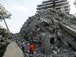 At least four people are killed and ‘more than 100 buried inside’ as 25-storey skyscraper collapses during construction in Nigeria