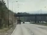 The lorry can be seen approaching a bridge over the triple-carriageway section.