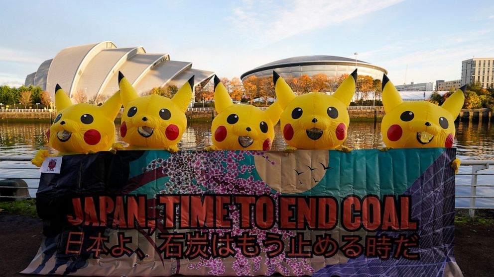Outside the venue where negotiators were meeting Thursday, protestors clad as animated characters blasted Japan’s continued coal use.