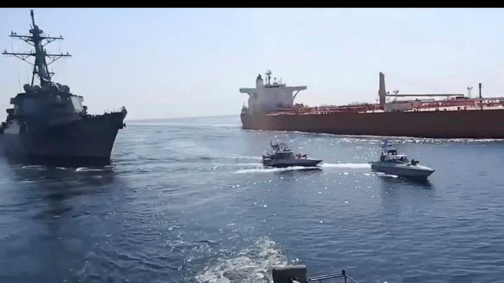 Iranian state TV offered a series of contradictory reports about a confrontation between the Guard and the U.S. Navy’s Mideast-based 5th Fleet. State TV sought to cast the incident as an act of American aggression against Iran in the Gulf of Oman, with the U.S. Navy detaining a tanker carrying Iranian oil and the Guard freeing it and bringing it back to the Islamic Republic.