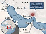 A map shows the location of a 6.3-magnitude earthquake which occured around 39 miles northwest of Bandar Abbas in Iran