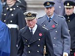 Pictured: Prince Charles lead the royal family at this year’s Remembrance Sunday ceremony at the Cenotaph in Whitehall, central London and laid a wreath on behalf of his mother the Queen after she was forced to miss the event due to a back injury