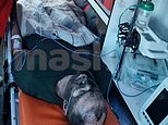 Footage showed Alexander Zakovryashin, 51, covered in black soot and lying in the back of an ambulance as he spoke to paramedics, telling them: ‘I’m perfect.’