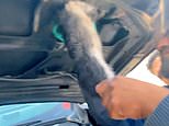 Let meow-t of here! Heartwarming moment trapped kitten is pulled out of car bonnet and reunited with its mother