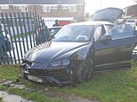 EXCLUSIVE: Aston Villa star Kortney Hause crashes his new £180,000 Lamborghini into school fence just yards from front gate