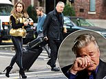 Alec and Hilaria Baldwin were spotted at the Madman Espresso near their NYC home on Thursday morningA smiling Hilaira wore a loud outfit of electric metallic leggings and a golden vestBaldwin kept a sullen look as he wore a pitch-black outfit and carried suitcases to his SUVThe outing to their usual coffee shop comes hours before Baldwin’s interview with ABC airs, where he cries and denies pulling the trigger that killed cinematographer Halyna Hutchins on the set of Rust
