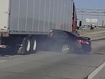Footage recorded on Tuesday at around 11.40am by a motorist travelling on Interstate 294 northbound showed a cloud of dust rising from beneath the truck as it travelled along the road.