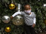 South African officials warned higher hospital admissions among children during the fourth wave of infections in the country should prompt vigilance but not panic, will infections so far being mild. Pictured: A child in Johannesburg stands by a Christmas tree today
