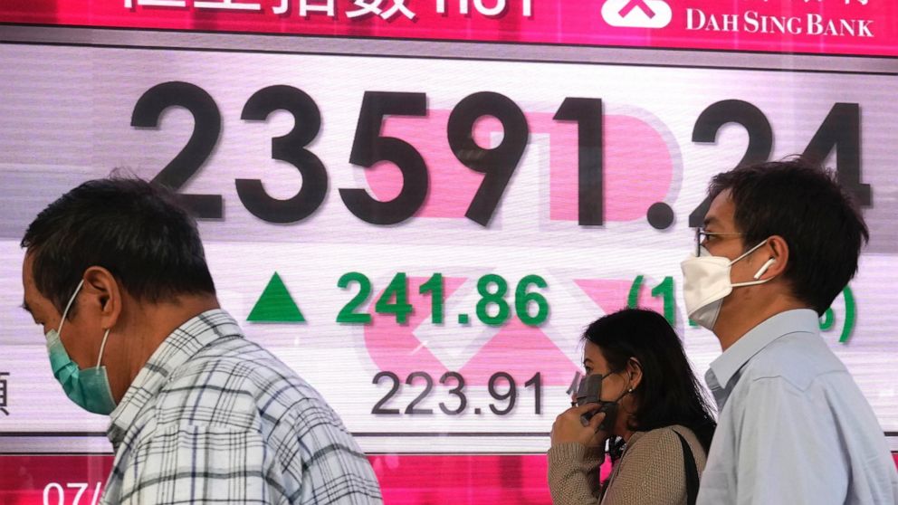 The Nikkei 225 in Tokyo gained 1.9% to 28,455.60 and Hong Kong’s Hang Seng added 2.6% to 23,983.66.