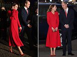 The mother-of-three debuted a new red Catherine Walker coat dress for the outing, which featured a large bow detailing across the bodice, as she stepped out with Prince William, 39.
