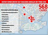 UK Health Security Agency Officials have revealed the top ten areas suffering the biggest Omicron outbreaksEight are in London, suggesting that the capital may be at the epicentre of the outbreakWest Northamptonshire has the most Omicron cases to date, and Buckinghamshire is also in the top ten