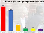 Labour surges into SIX POINT poll lead over Boris Johnson’s Tories as support for the opposition hits highest level of his premiership after week of crisis in Downing Street