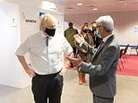 Boris Johnson today gave the green light for people to celebrate on New Year’s Eve but urged the nation to be ‘cautious and sensible’. He is pictured this morning at a vaccination centre in Milton Keynes